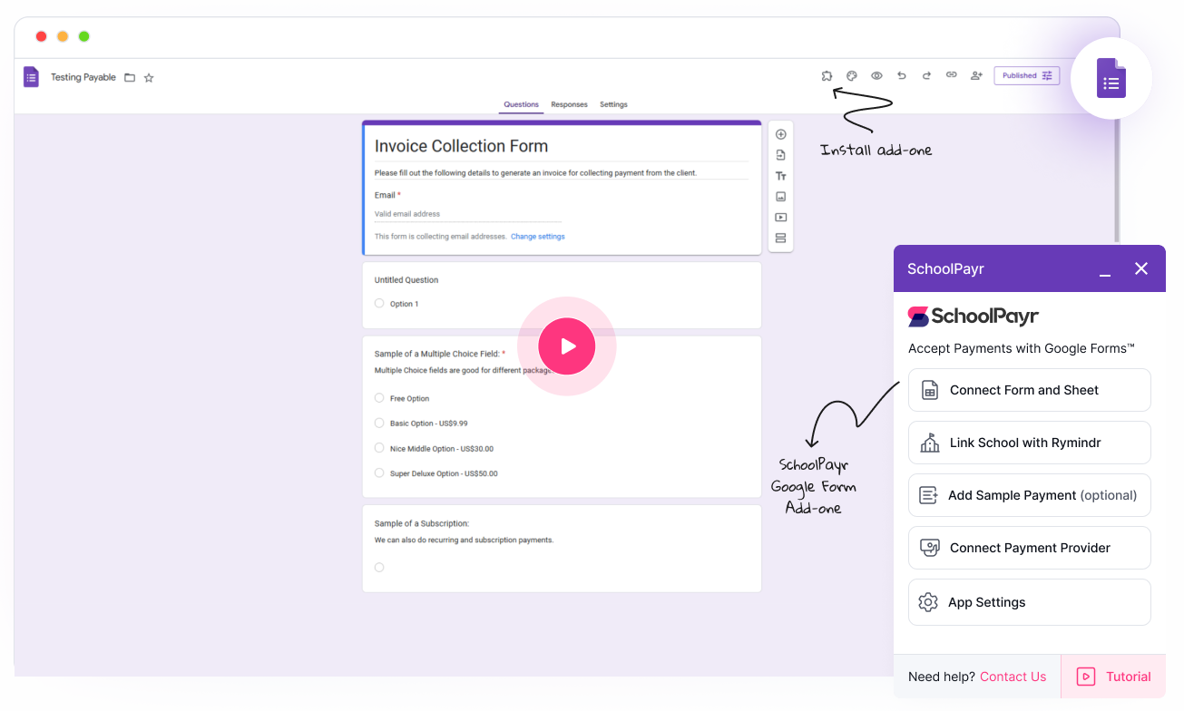 The all-in-one payment integration for your Google Forms™. Our add-on helps you make Payable Forms.