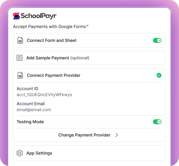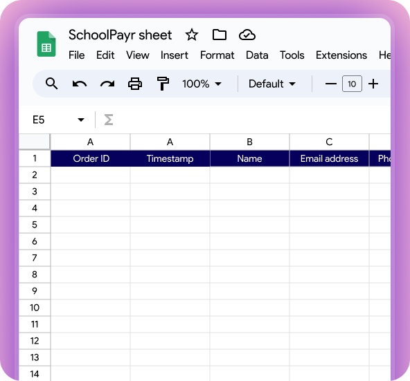 SchoolPayr is compatible with Google Forms™ and Google Sheets™ to streamline payment collection.