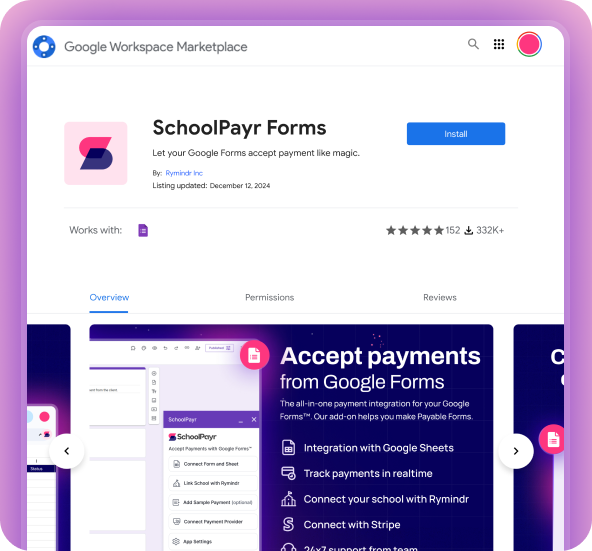 Go to the Google Workspace Marketplace, search for “SchoolPayr,” and hit Install to download it.